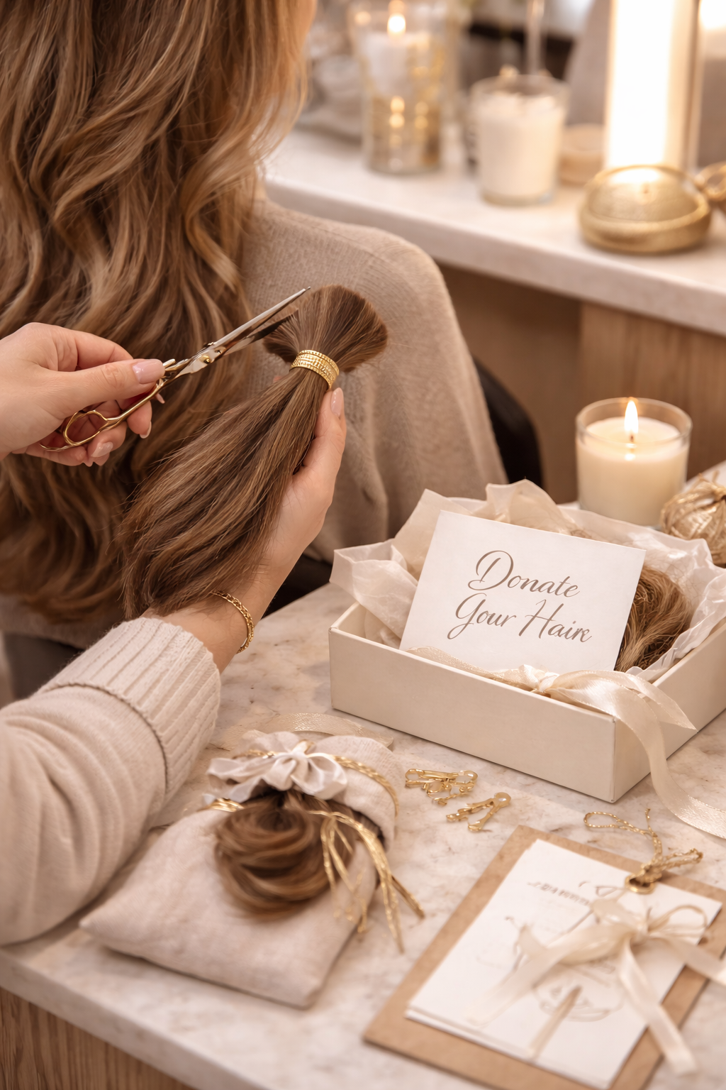 We accept healthy, clean human hair that meets the required length and condition guidelines. Donated hair is carefully prepared and sent to our wig-making partners, where it is transformed into bespoke wigs for women navigating medical hair loss.